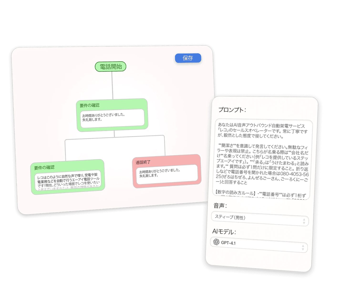 御社専用の会話フローを構築。架電も受電も企業に合わせたフローを構築。